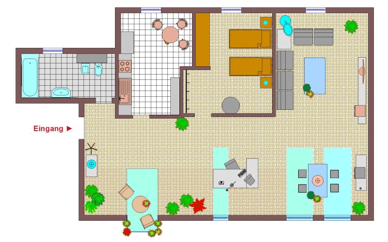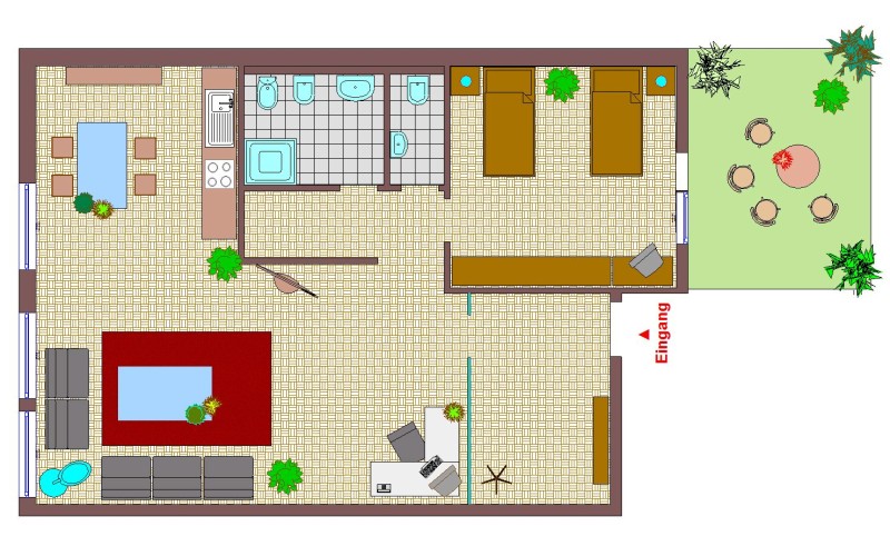 Here we offer you several fully furnished apartments and flats with more than 73 square meters with varying room layouts and designs - some with terrace, separate guest-toilet, bathtub and shower.